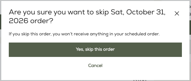 I'm going away, how can I skip my next subscription order?Updated 23 days ago